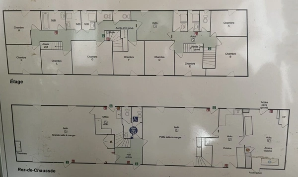Gîte attenant Très grande capacité : Le gîte dispose de deux salles de réception, d'une cuisine professionnelle et de nombreuses chambres réparties sur deux niveaux, toutes équipés d'un point d'eau. Des salles d'eau et sanitaires complètent l'ensemble. Certaines parties à rénover, mais offrent un excellent potentiel pour accueillir des groupes, séjours, retraites ou événements.