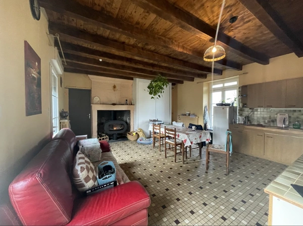 Appartement indépendant : Séjour avec cuisine ouverte, salle d'eau, WC, véranda et mezzanine. Idéal comme logement annexe ou location. Partie à rafraîchir selon vos besoins.